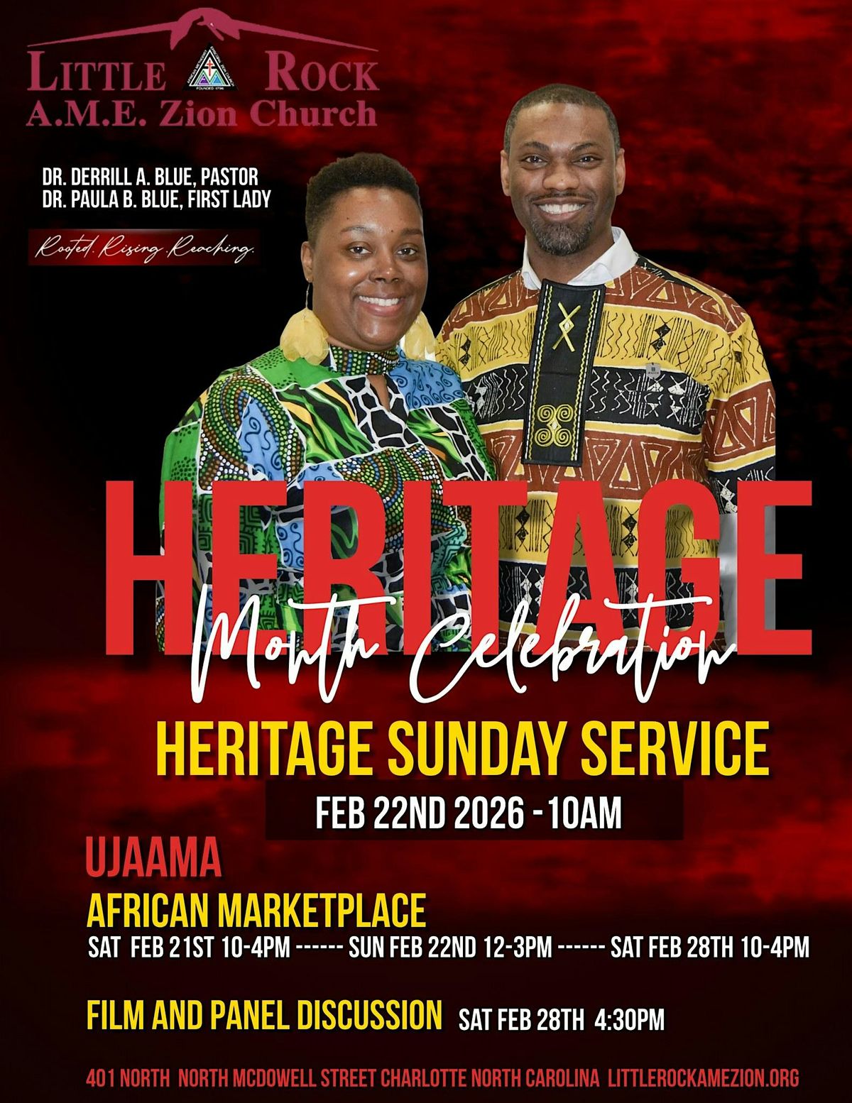 Join us for the Little Rock A.M.E. Zion Church Heritage Celebration, a multi-day event honoring our heritage. Join us for a powerful Heritage Sunday worship service, the Ujaama African Marketplace featuring local vendors, and a film and panel discussion. Families and community members of all ages are welcome.