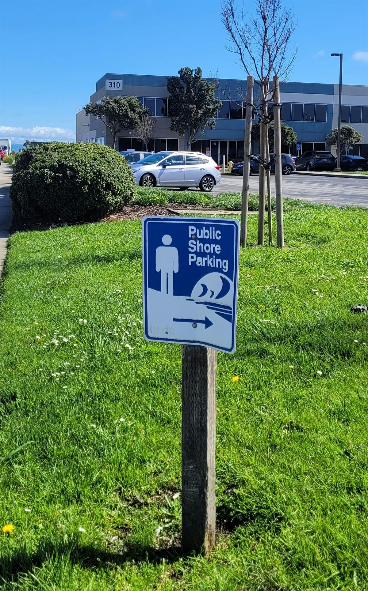 LOOK for the Public Shore Parking Lot Signs and head towards the water to park.