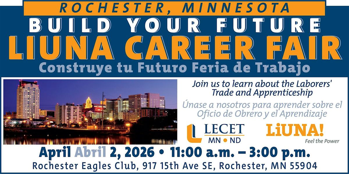Looking to jumpstart your career in construction? LIUNA is hosting a Construction Career Fair in Rochester, Minnesota! This in-person event is the perfect chance to meet industry pros, learn about exciting job opportunities with Union contractors, and get your foot in the door. Whether you're new to construction and interested in Apprenticeship training options or looking to move up, don't miss out on connecting with top employers and discovering your future in the building trades. See you there!