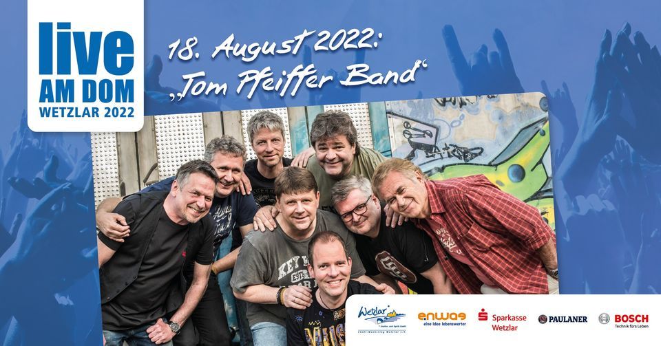 Live am Dom 2022 – 18. August: „Tom Pfeiffer Band“Acht Top-Musiker und ihr fester Live-Tontechniker machen seit 15 Jahren gemeinsam die Musik, die ihnen am meisten Spaß macht und die sie vorher noch in keiner anderen Band verwirklichen konnten: „Best of Rock Classics“ - dargeboten mit den ausgefeilten Arrangements der Originale und einem stimmgewaltigen Leadsänger – Tom Pfeiffer - da bleiben für Fans der Rockmusik der 70-er und 80-er Jahre keine Wünsche offen.