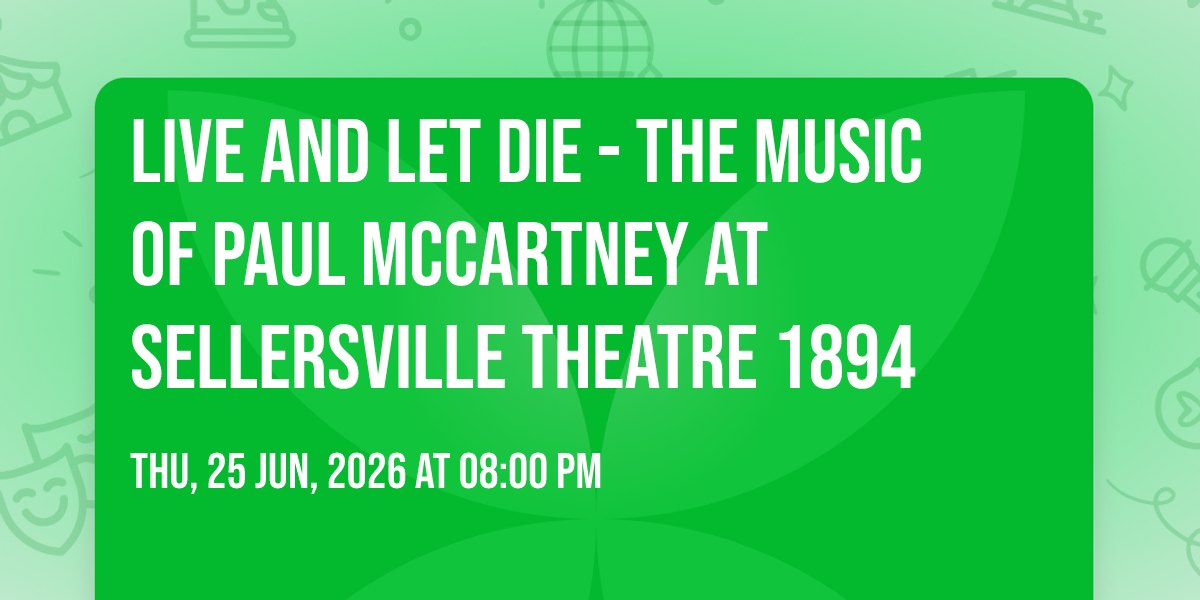 π Journey into wonder at Live and Let Die - The Music of Paul McCartney at Sellersville Theatre 1894, where extraordinary experiences await around every corner! ποΈ Set against the backdrop of Sellersville Theatre 1894 in dynamic Sellersville, PA, this event promises to exceed all expectations. π Join us on June 25th, 2026 at 08:00 PM for a celebration that combines innovation, entertainment, and community spirit in perfect harmony. β¨ There will be an atmosphere where memories are made and stories come alive, ensuring every guest experiences something truly remarkable. π This is more than just an event; it's a journey into the extraordinary!