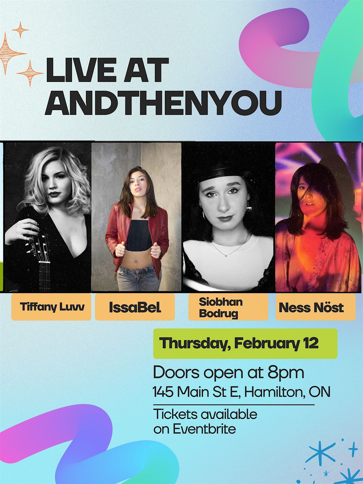 Come enjoy incredible live indie music by Tiffany Luvv, IssaBel, Siobhan Bodrug and Ness Nöst!