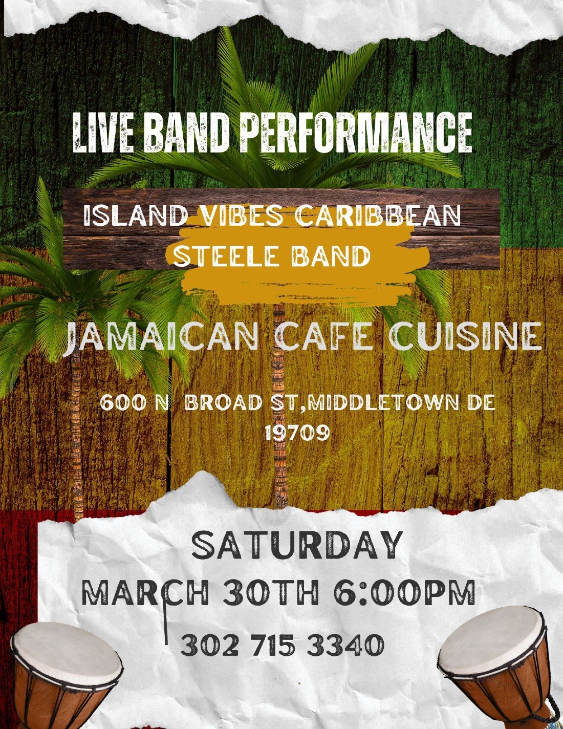 We can't wait to hoist your and or your guest. We have great tasting food drinks and rock to the sound of Live music by Island Vibes Steele Band.