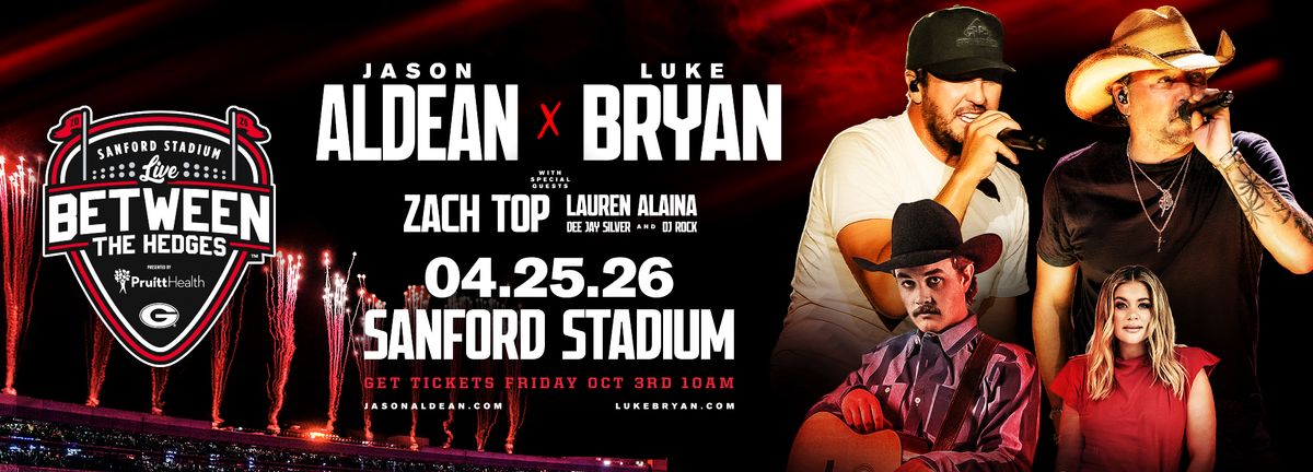π Welcome to Live Between The Hedges: Luke Bryan Jason Aldean Zach Top & Lauren Alaina, where the impossible becomes possible and dreams take flight! ποΈ Join us at Sanford Stadium in the heart of Athens, GA for an event that will redefine your expectations. π