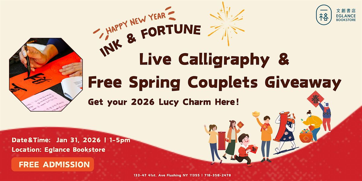 Spring is around the corner! To celebrate the Year of the Horse, Eglance Bookstore cordially invites you to our "Live Calligraphy & Spring Couplets Giveaway" event. Join us for a cultural celebration where renowned New York calligraphers will create traditional "Chunlian" (Spring Couplets) live to bring blessings and good fortune to your home.