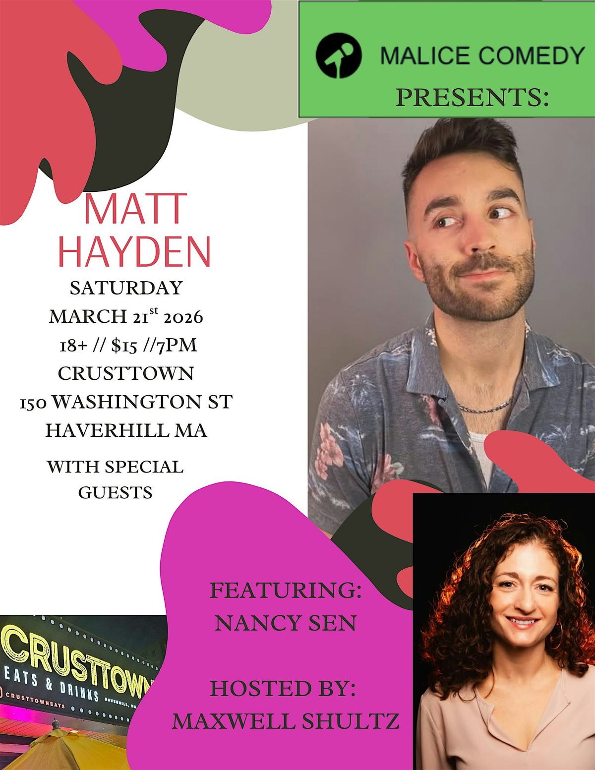 Matt Hayden is a Boston based stand-up comedian that is known for his sarcastic, raunchy, and witty sense of humor.