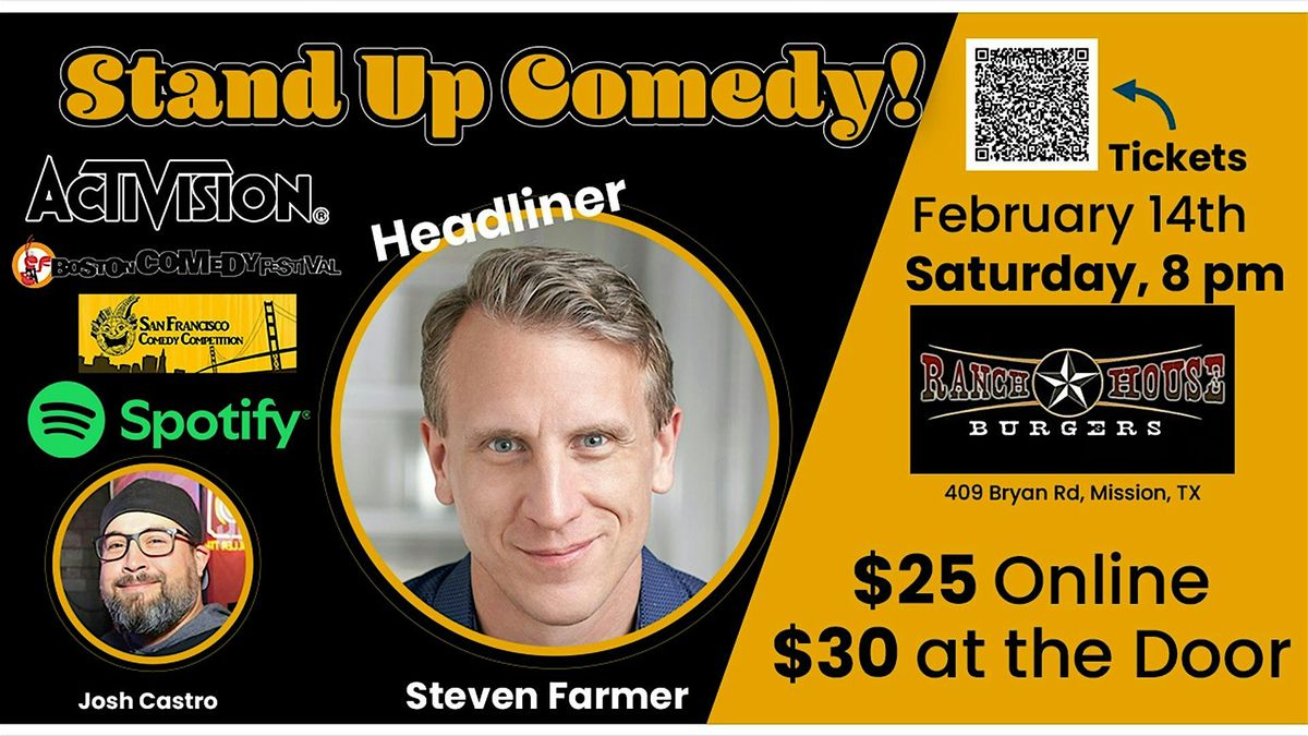 Steven Farmer is a comedian, filmmaker, actor, and author based in Austin, TX. After finally escaping Arkansas with a theatre degree from an agricultural school, he began his journey in standup comedy where he’s headlined across the country touring the U.S. and Europe. Steven’s comedy draws on his crazy experiences of growing up in a small town, his constant confusion with cultures while traveling, working jobs he had no business (or qualification) to be doing, and his unique ability to seamlessly switch between accents, impressions, and original characters.His standup comedy clips on social media have gone viral several times gaining millions of views. His comedy sketches on his YouTube channel have won multiple film festival awards around the world and have been featured on channels such as Right This Minute. Steven also does voice-over work for large companies such as Pet Lab Co. as well as many companies and franchises he'd love to brag about but they had him sign an NDA (yeah, they really do that). Steven was one of the few comedians selected to compete in the prestigious San Francisco Comedy Competition and Boston Comedy Festival (Semifinalist). His 1st comedy special ‘Arkansas Refugee‘ is now available on YouTube.
