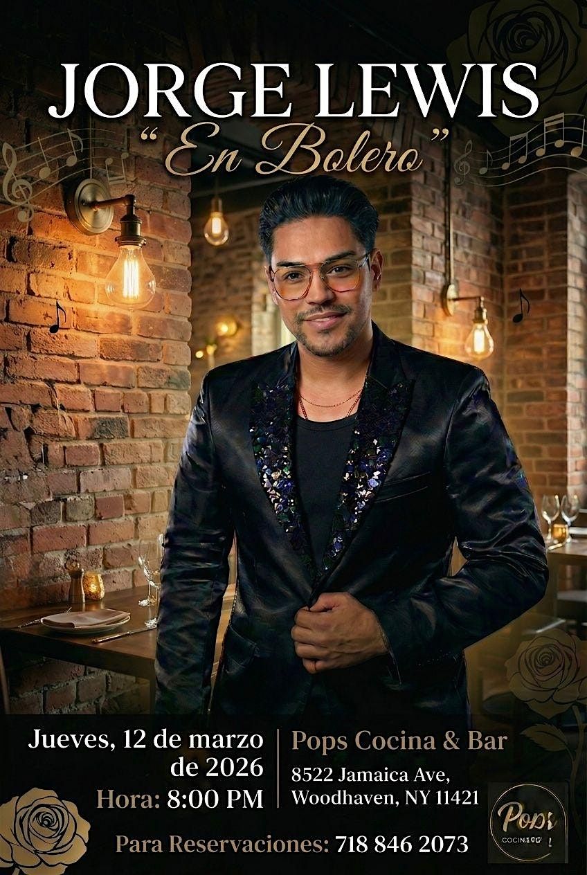 Join us for an intimate evening of live acoustic Latin music with the talented Jorge Lewis performing his special show “En Bolero.” Enjoy a romantic night filled with classic boleros and Latin favorites performed in a beautiful acoustic style.