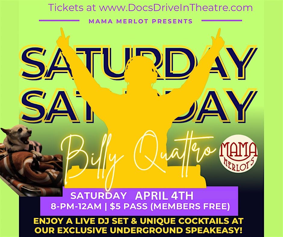 Get ready for an epic night with Billy Quattro spinning live vinyls at Mama Merlot's Speakeasy! Join us on April 4, 2026 at 8:00 PM to Midnight for great vibes, cool beats, and an unforgettable atmosphere. Bring your friends and come chill where the music and good times never stop! Great food, drinks and more!