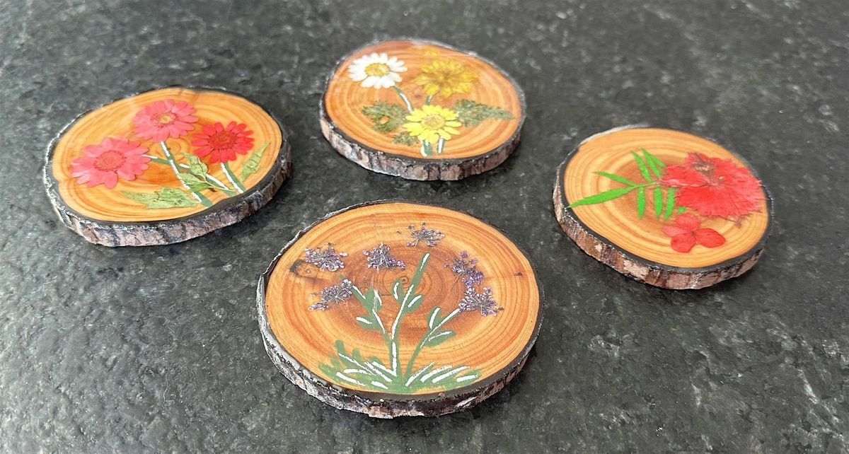 Live Edge Coasters with Pressed Flowers & Resin Paint Sip Art Class Canton