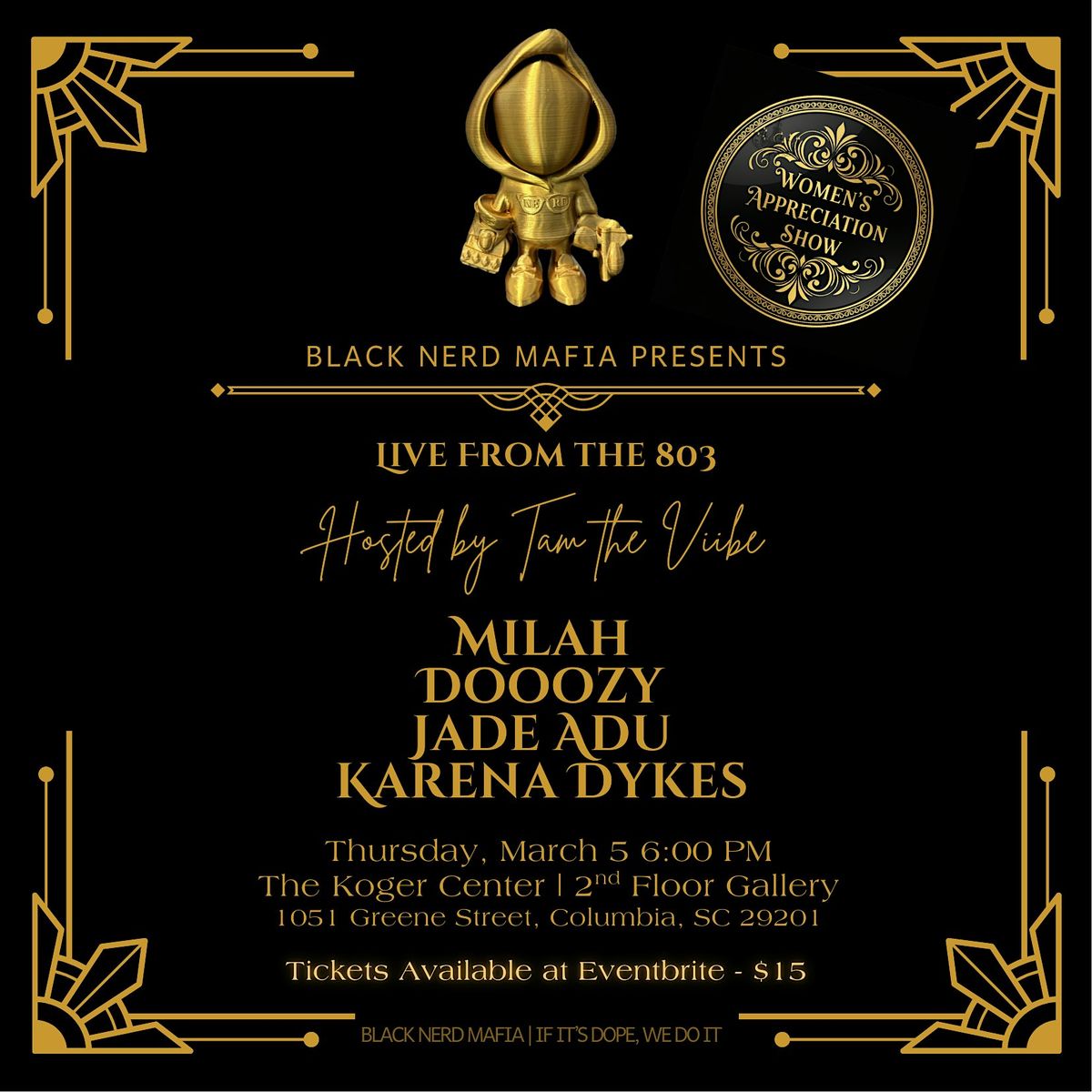 Live From the 803 is a monthly art series dedicated to highlighting the creativity and culture of South Carolina’s independent artists. Each event features an exciting mix of live music, spoken word, visual art, and performance, offering a platform for both emerging and established talent to share their voices with the community.