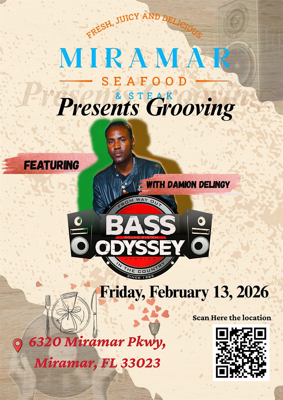 Get ready for an unforgettable night with BASS ODESSEY featuring the amazing DAMION DELINGY! Join us in person at Miramar Seafood & Steak Restaurant for awesome vibes, great tunes, and delicious eats. It's the perfect combo of live music and a tasty meal—don't miss out!