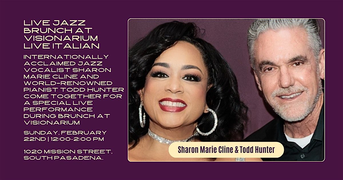 Internationally acclaimed jazz vocalist Sharon Marie Cline and world-renowned pianist and producer Todd Hunter come together for a special live performance during brunch in the heart of South Pasadena.