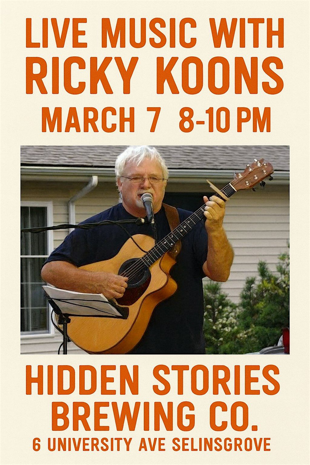Live Music by Ricky Koons at Hidden Stories Brewing Co Taproom March 7th