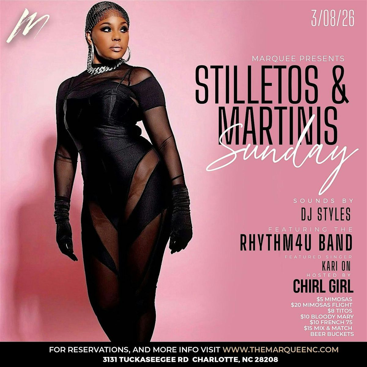 Live band, martinis & luxury vibes! Stiletto & Martini Sundays at Marquee featuring RHYTHM4U & Chirl Girl. Doors at 5PM. Let’s go!About this Event