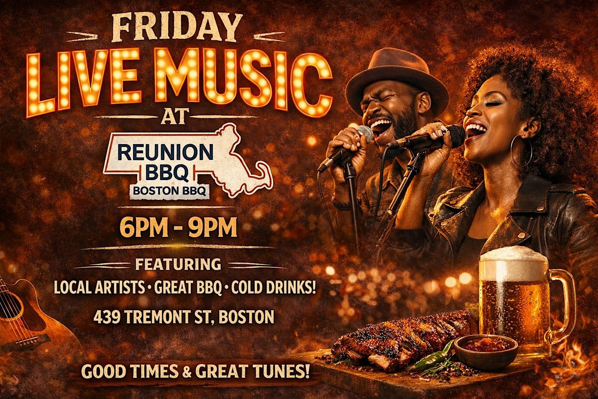 Join us at Reunion BBQ (439 Tremont St, Boston) for an intimate evening of live music from 6PM–9PM, thoughtfully designed to pair perfectly with dinner, cocktails, and great company.
