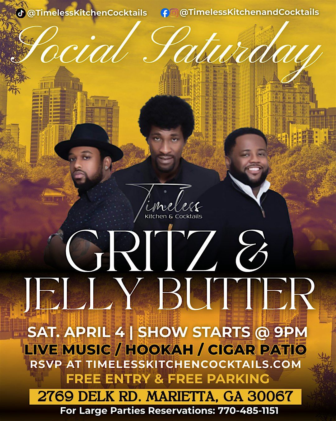 #LiveMusicAtlanta #AtlantaNightlife #MariettaGA #RnBLive #LiveBandATL #ThingsToDoInAtlanta #CobbCountyEvents #HookahLounge #SaturdayNightATL #TimelessKitchenCocktails