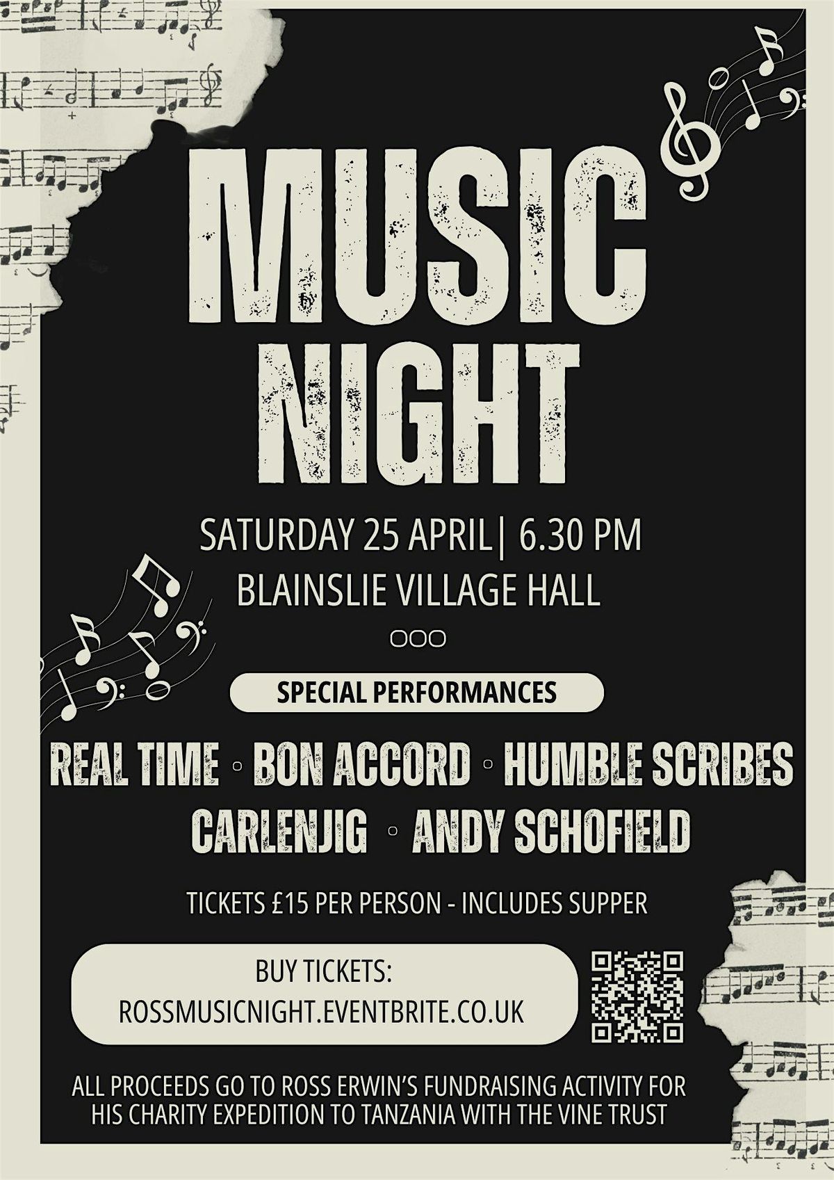 Local musicians will be perfoming LIVE on the night. These will include Real Time, Carlenjig, Humble Scribes, Bon Accord and Andy Schofield, bringing a super mix of contemporary scottish folk music, some self-penned material, jazz, swing and more! We will have an interval where a light supper will be served.