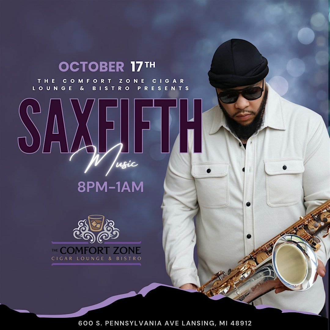 Join us for a night of smooth tunes! SaxFifth Music will be gracing us with their jazzy melodies at The Comfort Zone Cigar Lounge & Bistro. Relax, unwind, and enjoy the live music in person. It's the perfect way to spend your evening with friends or loved ones. Don't miss out on this fantastic musical experience!