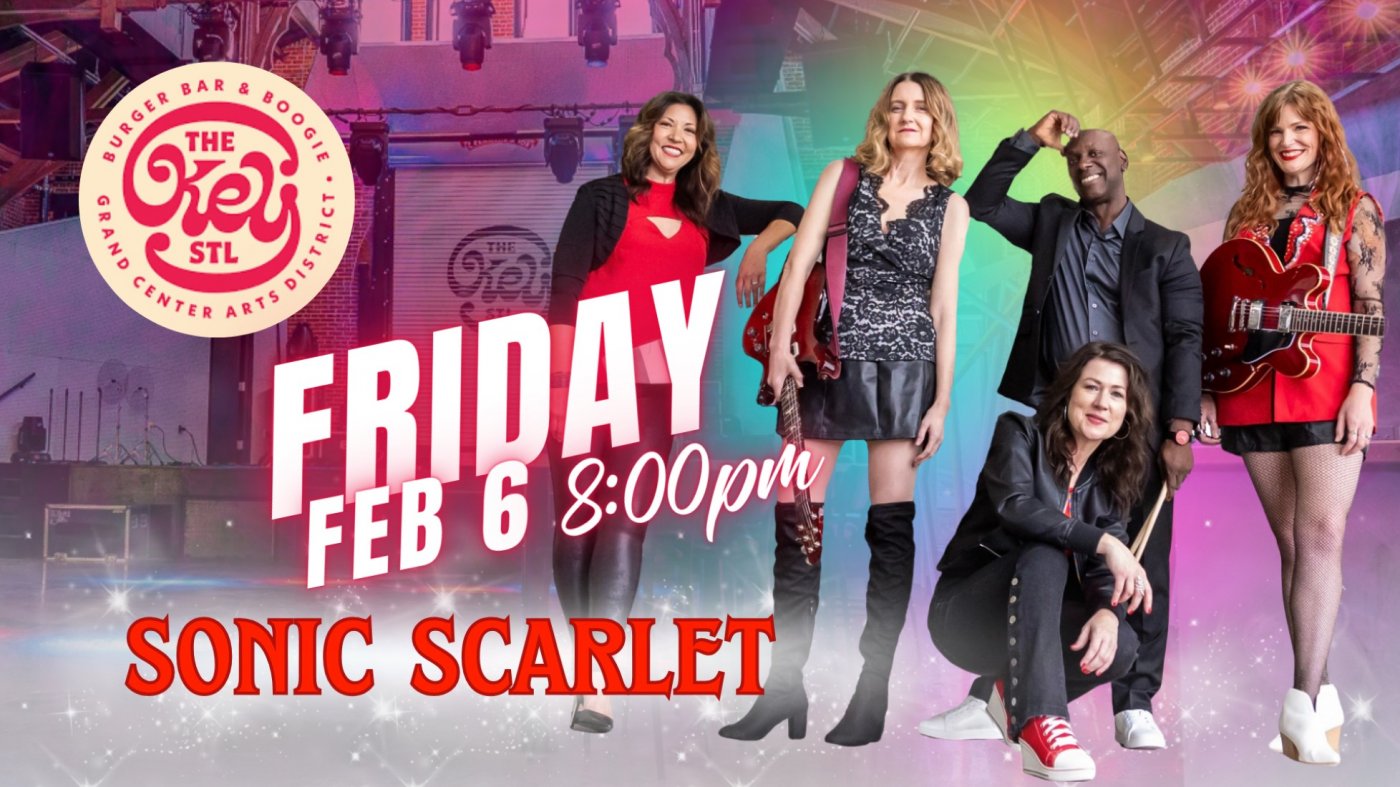 LIVE MUSIC, NO COVER! Sonic Scarlet is pumped to make their first-ever appearance at The Key STL, Grand Center’s newest go-to hang from the Kranzberg Arts Foundation. This place has it all!