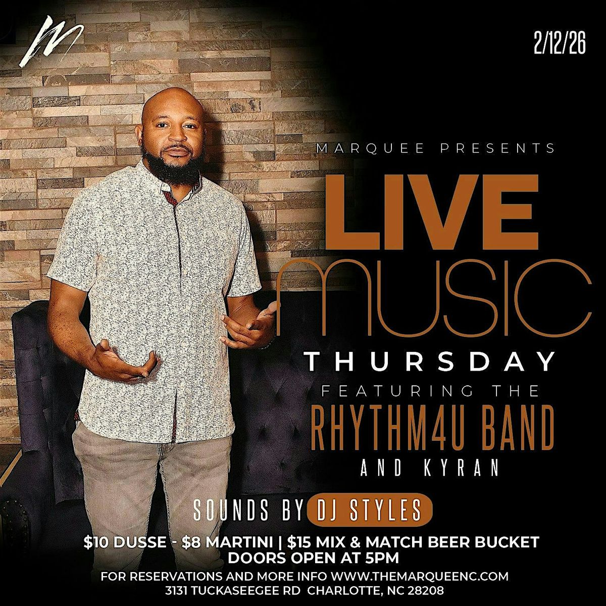 Kick off your Thursday night at The Marquee with Live Music Thursday! Experience the electrifying sounds of the Rhythm4U Band and Friends, with DJ Styles keeping the energy high all evening.