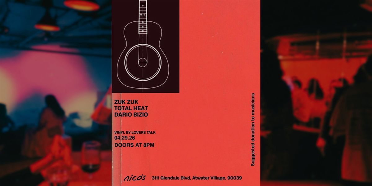 Get ready for an awesome evening with ZUK ZUK, TOTAL HEAT, and DARIO BIZIO, plus vinyl vibes spun by Lover's Talk at nico's!
