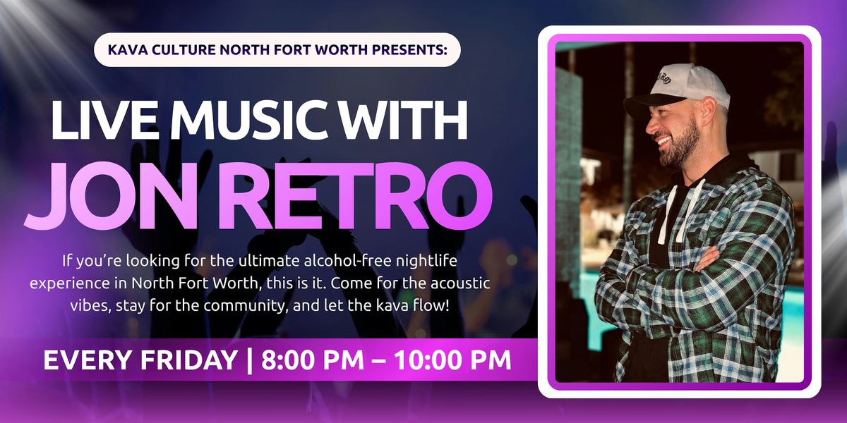 Experience the best local talent in an environment built for connection. Every Friday night, Kava Culture North Fort Worth hosts Jon Retro for a two-hour live set of soulful music and high-energy performance.