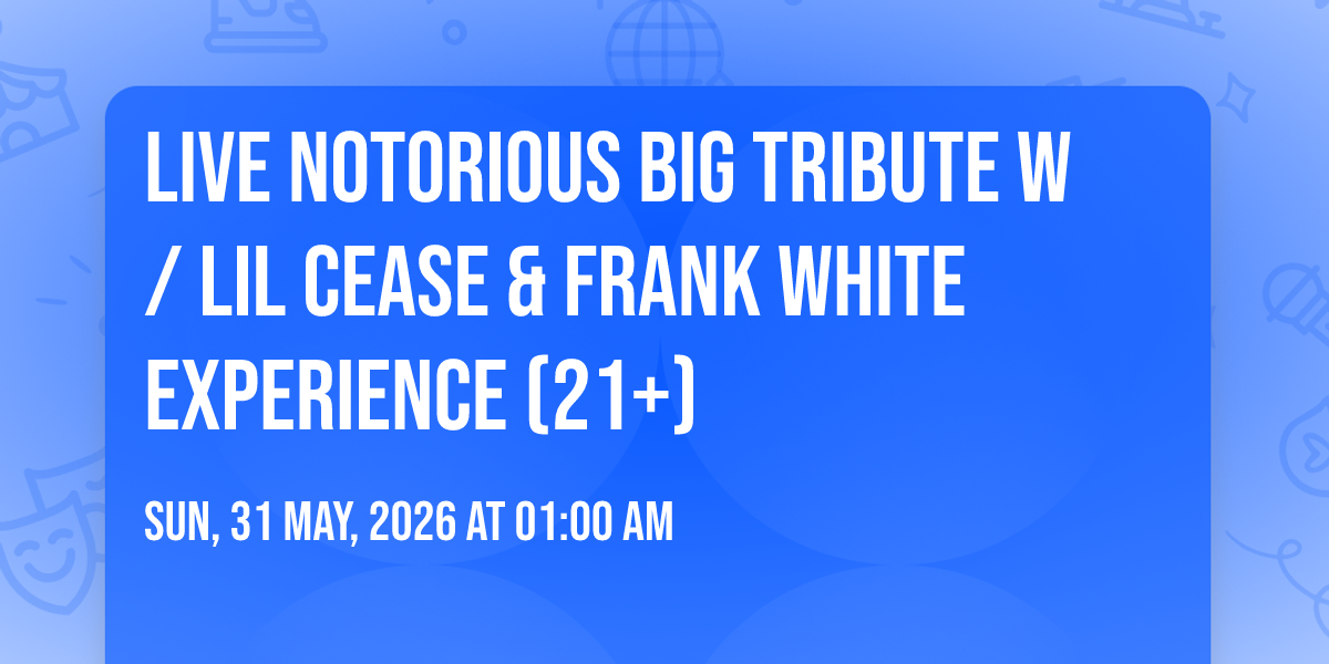 π Location: 37.4158, -77.6285π Step into a world of wonder at Live Notorious BIG Tribute w/ Lil Cease & Frank White Experience (21+), where extraordinary moments await! ποΈ Located at Uptown Alley Richmond in dynamic Midlothian, VA, this event will become the talk of the town. π Join us on May 31st, 2026 at 01:00 AM for a celebration that defies the ordinary. β¨ This curated experience brings together the best of entertainment, culture, and community spirit. Every detail has been thoughtfully planned to ensure an unforgettable experience for all our guests. π― Take advantage of this opportunity to be part of something special. π Early registration is recommended as space is limited!