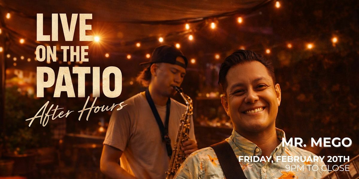 Join us Friday, February 20th as Mr. Mego takes over the patio with a live reggae performance starting at 9PM. Expect island rhythms, feel-good energy, and a vibrant atmosphere under the lights as the patio transforms into a laid-back but lively Friday night escape.