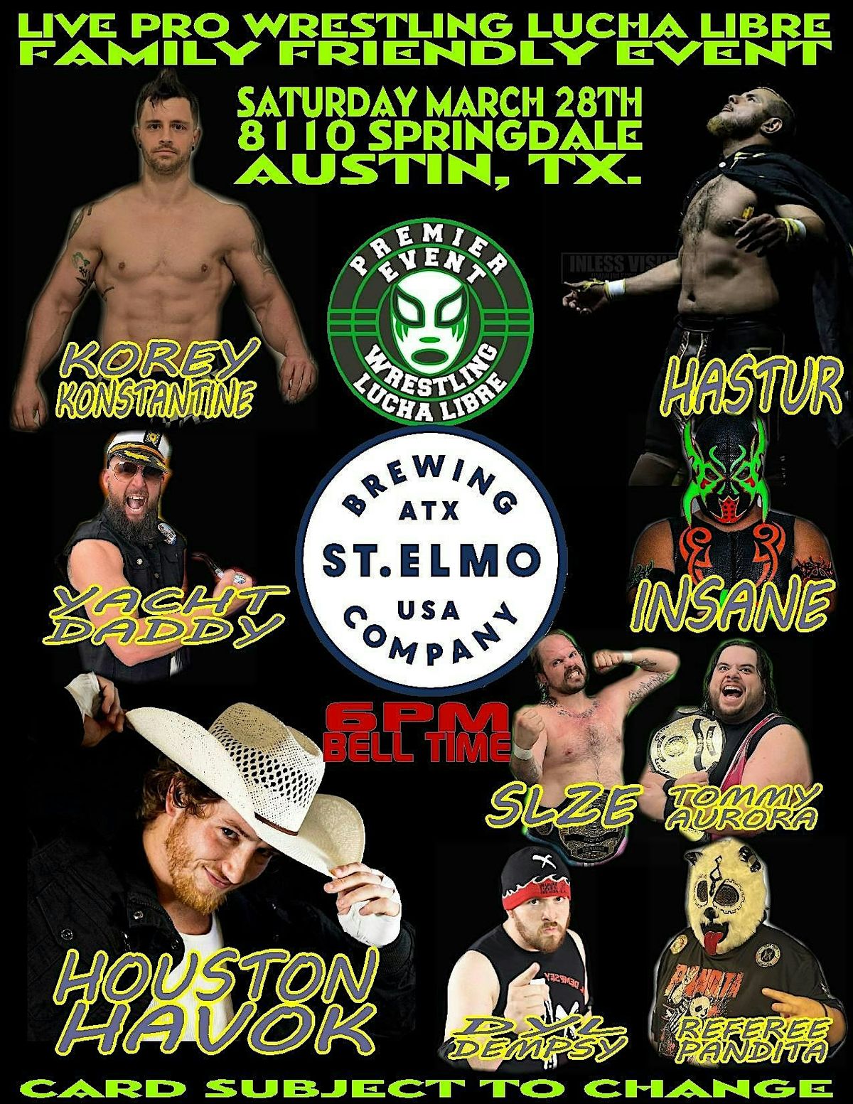 Get ready for a night of Lucha Libre action at St. Elmo Springdale on Saturday, March 28th. This family-friendly event brings the heat with an incredible lineup of wrestlers battling it out in the ring.