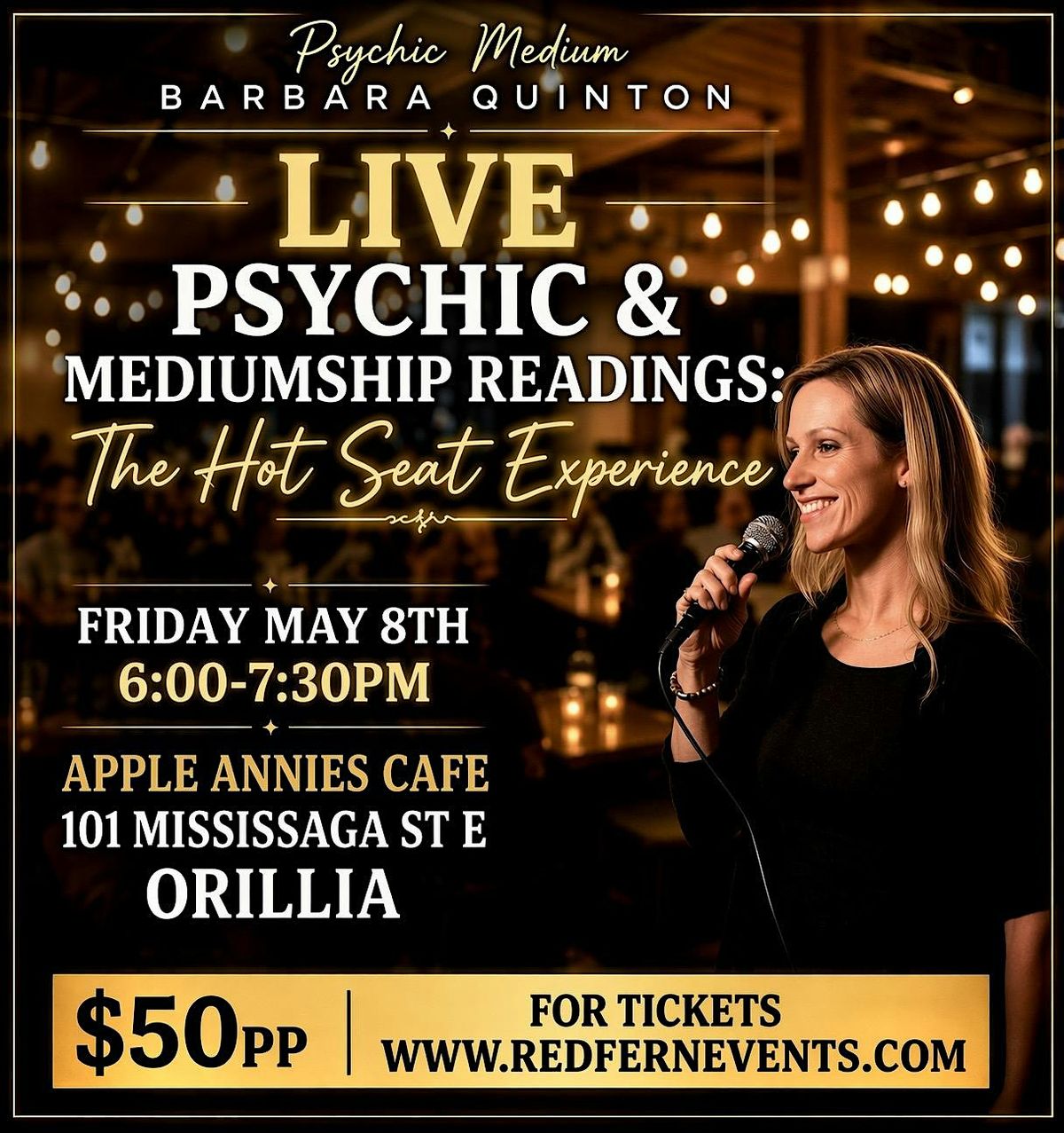 The chosen will be on "the hot seat", providing Barbara with any question they have about their life (family, relationships, career, money, spirituality) and will recieve a 1:1 reading where Barbara will offer insight, clarity and intuitive guidance!