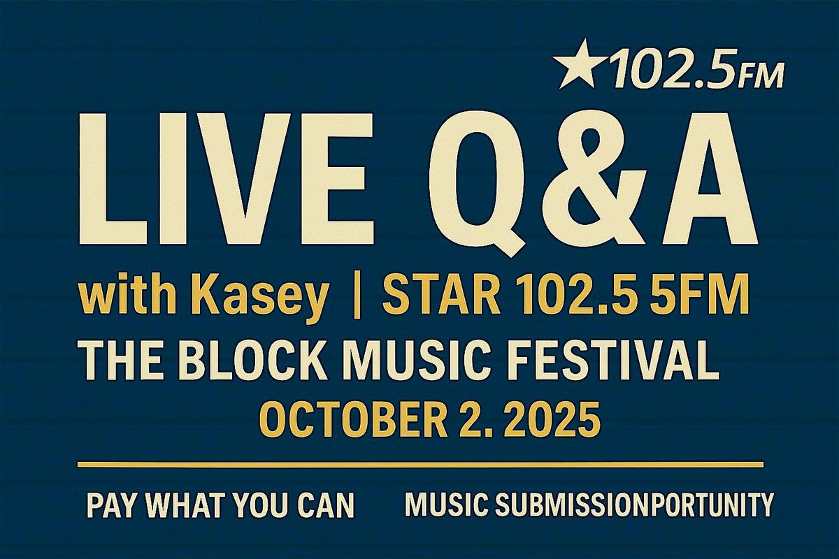 Join Kasey with Star 102.5FM for a Live Q&A at The Block Music Festival – October 25, 2025