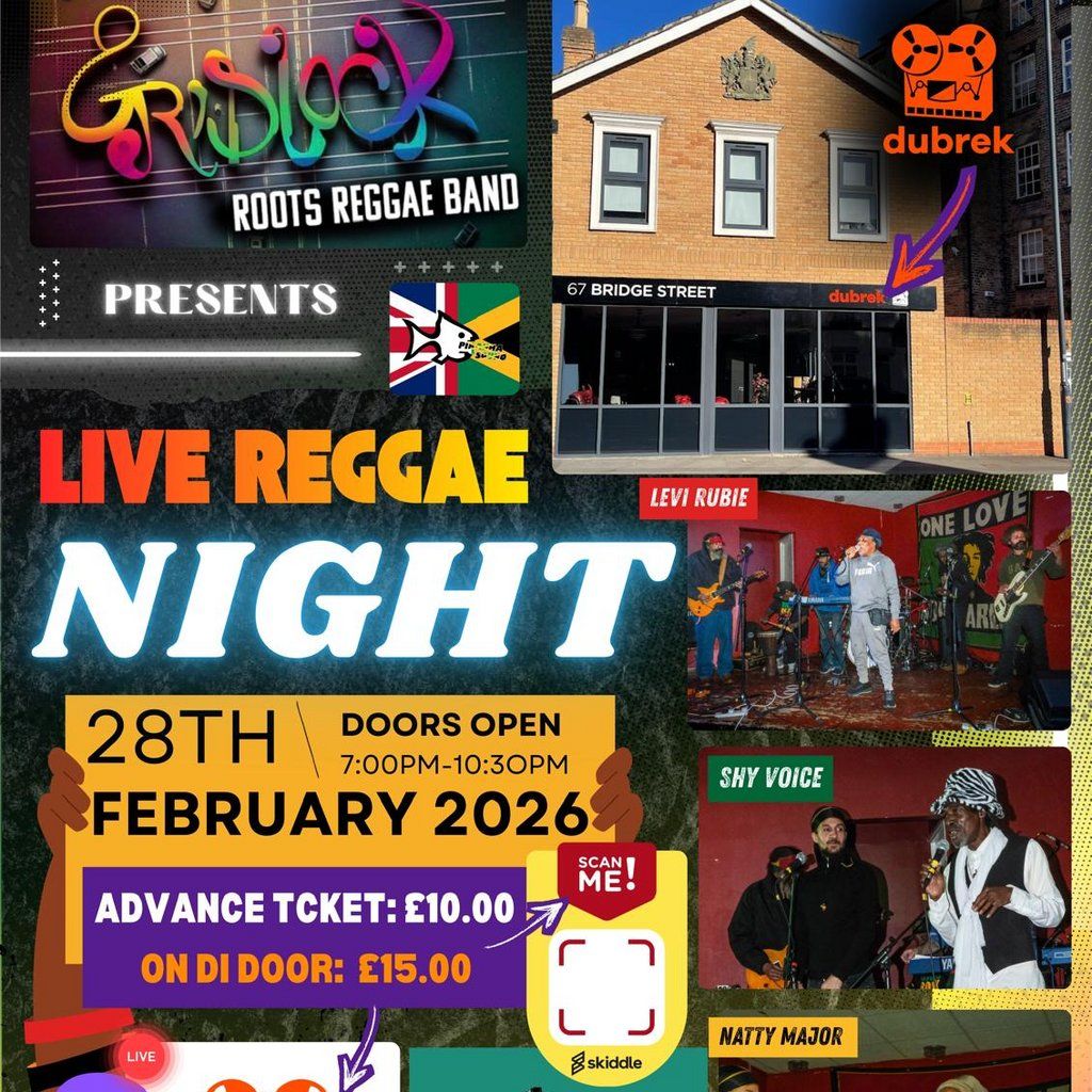 Turn up the bass! Get ready for a night of pure roots and culture at Dubrek Studio.Live DJ's and live Roots Reggae Band Gridlock.