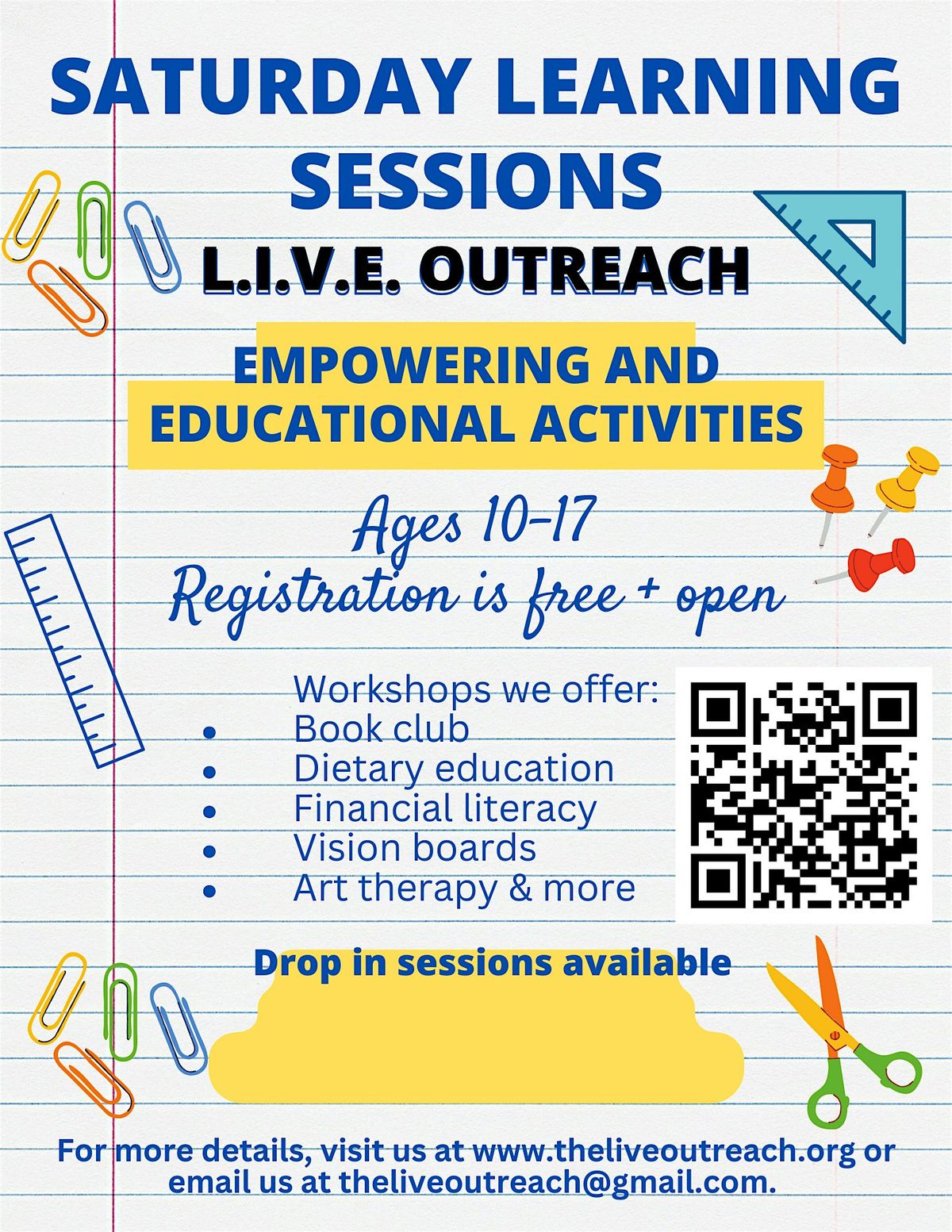 The L.I.V.E Outreach is excited to kick off our Saturday Sessions starting January 24, 2026 at the Jefferson Branch Library from 12 PM–4 PM!