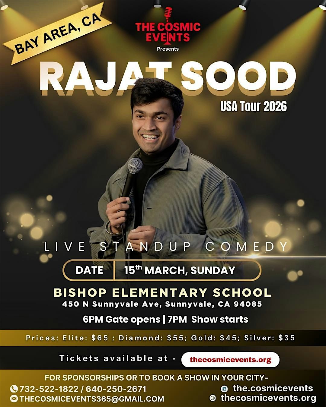 Mark your calendars for the 15th of March, 2026, as the much-awaited event "Rajat Sood Live Standup Comedy" is all set to add a dash of laughter to your life. Organized by The Cosmic Events 2026 (Thecosmicevents365), this event promises to deliver a unique blend of Hindi Comedy that will leave you in stitches. Don't miss out on this fantastic opportunity to experience the magic of live stand-up comedy!