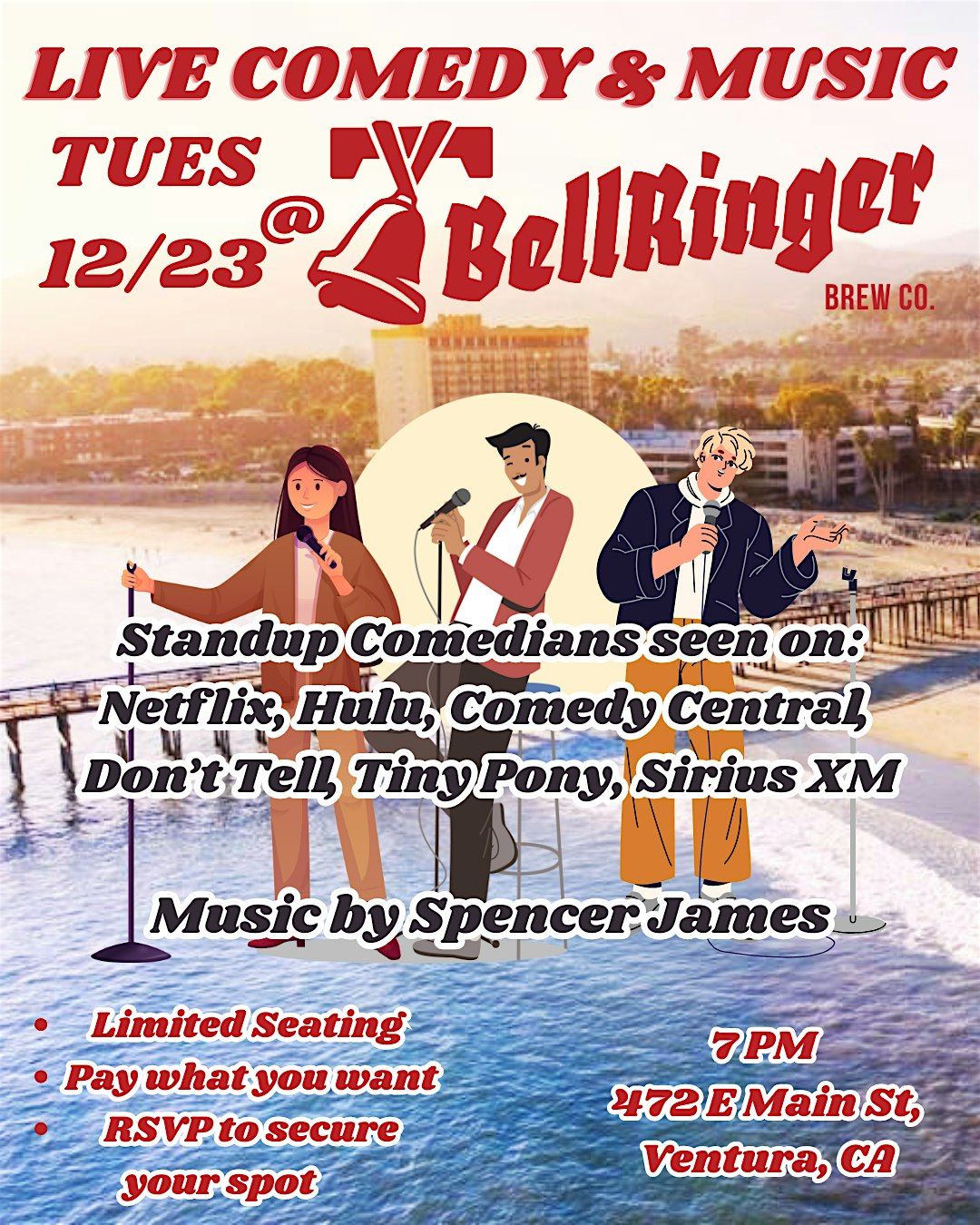 Get ready for a night of great vibes, fresh brews, live music, and big laughs! Bellringer Brewing Company in Ventura, CA is hosting a special standup comedy show on Tuesday, December 23rd—presented by Xander Beltran and Bellringer Brewing Co.