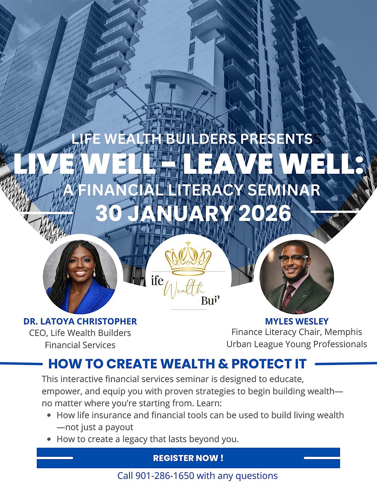 Info: This interactive financial services seminar is designed to educate, empower, and equip you with proven strategies to begin building wealth—no matter where you’re starting from. Discover some tools the wealthy use to generate and protect their wealth.