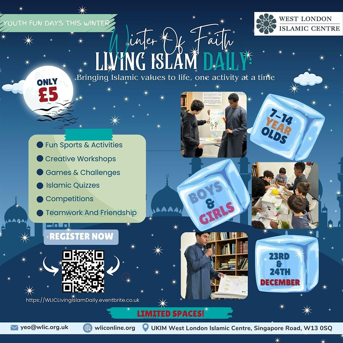 Each day is filled with energetic workshops, friendly competitions, and opportunities to learn, play, and grow β all in a safe, welcoming environment at the mosque.