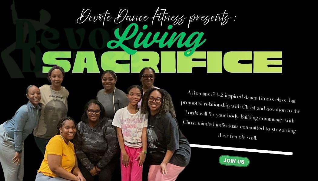 Welcome to the Living Sacrifice - Dance Fitness Class event happening at West Orange! Devote dance fitness is a Christian dance and fitness community that promotes devotion to Christ through his will for your body. Where faith and fitness meets!