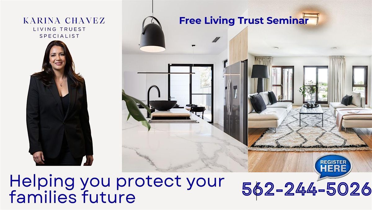 Welcome to the Living Trust Seminar hosted by Karina Chavez Probate & Trust Realtor! Join us on March 7, 2026 at 1:00 PM (Pacific Time) for an informative session on creating a living trust to protect your assets and ensure your wishes are carried out. Learn about the benefits of a living trust and how it can provide peace of mind for you and your loved ones. Don't miss this opportunity to secure your future! See you there!