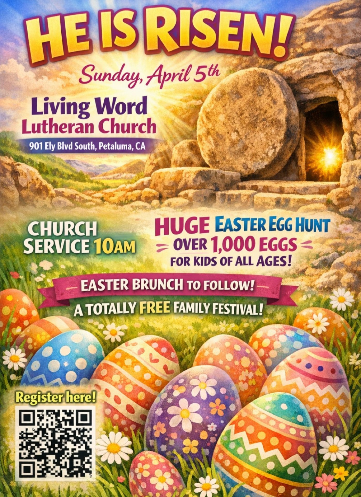 Please Join us for our Easter Festival on April 5th! We will have a church service at 10am followed by a FREE Brunch and Easter Egg Hunt!