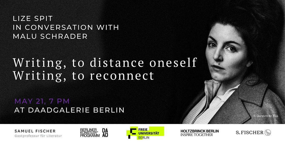 Lize Spit, Samuel Fischer Guest Professor for Summer Semester 2026, and Malu Schrader, editor and cultural journalist, discuss Lize’s debut novel Het smelt (Und es schmilzt, 2017, S. Fischer Verlag) and Autobiografie van mijn lichaam (Autobiografie meines Körpers, 2025). Lize’s work invites the audience to reflect on the idea that our bodies are connected to our roots, our parents and our childhood.