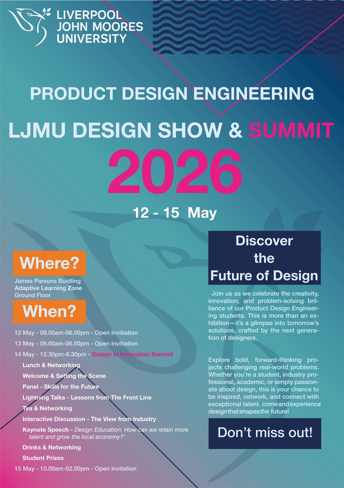 Join us to explore the latest in design, meet creative minds, and spark fresh ideas. This week-long celebration at LJMU is all about innovation, inspiration, and connecting with the coolest designers around. Don’t miss out on the buzz and excitement—come be part of the design community and see what the future holds!