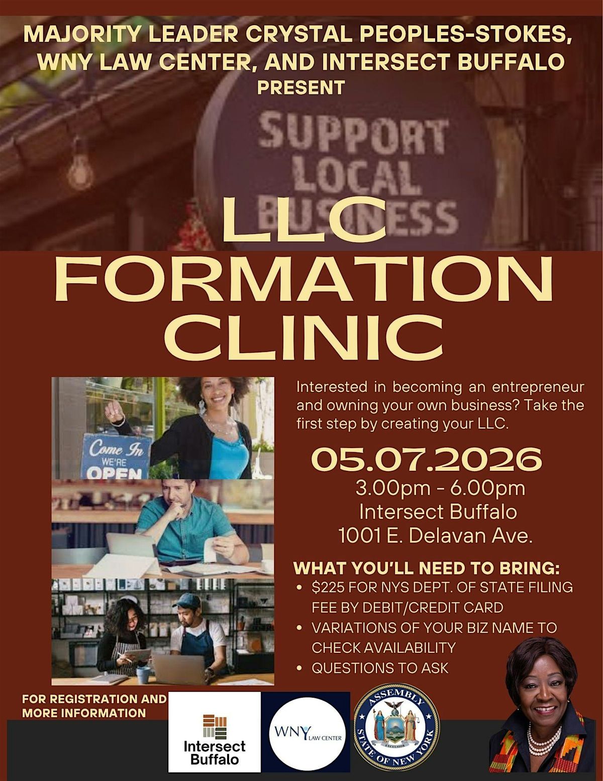 Ready to start your own business? Join us in person for the LLC Formation Clinic! Hosted by NYS Assembly Majority Leader Crystal Peoples-Stokes, WNY Law Center and Intersect Buffalo, we'll guide you step-by-step through the process of setting up your Limited Liability Company. Bring your questions, and get expert tips to make your startup journey smooth and hassle-free. Don’t miss out on this chance to turn your ideas and passions into a legit business!