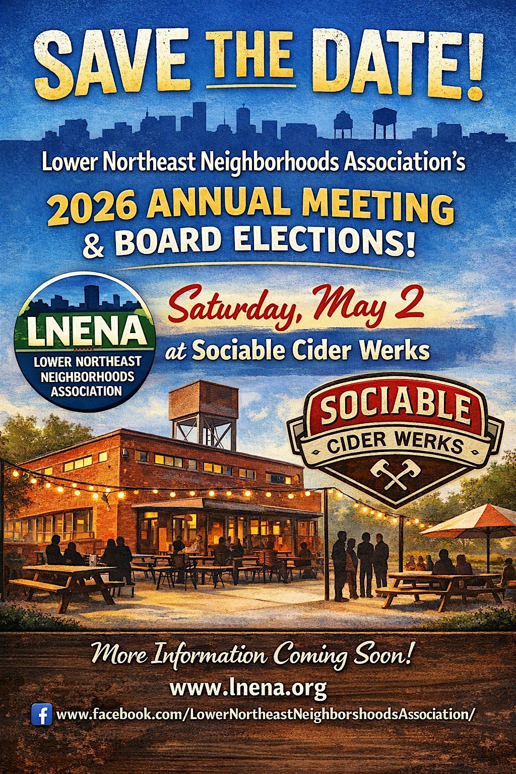 The Annual Meeting will begin at 3:00 p.m., where you will hear updates from elected officials, learn about upcoming projects, and have the opportunity to vote in the Board elections. Your voice matters. Help shape the future of Lower Northeast!