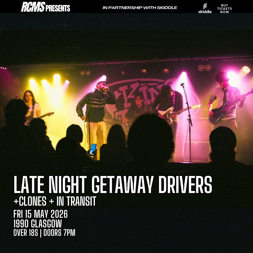 RCMS presents............... Late Night Getaway Drivers plus support at Glasgow's 1990 on May 15th - doors open 7pm - over 18sMusic Genres : Indie, Alternative, Indie Pop