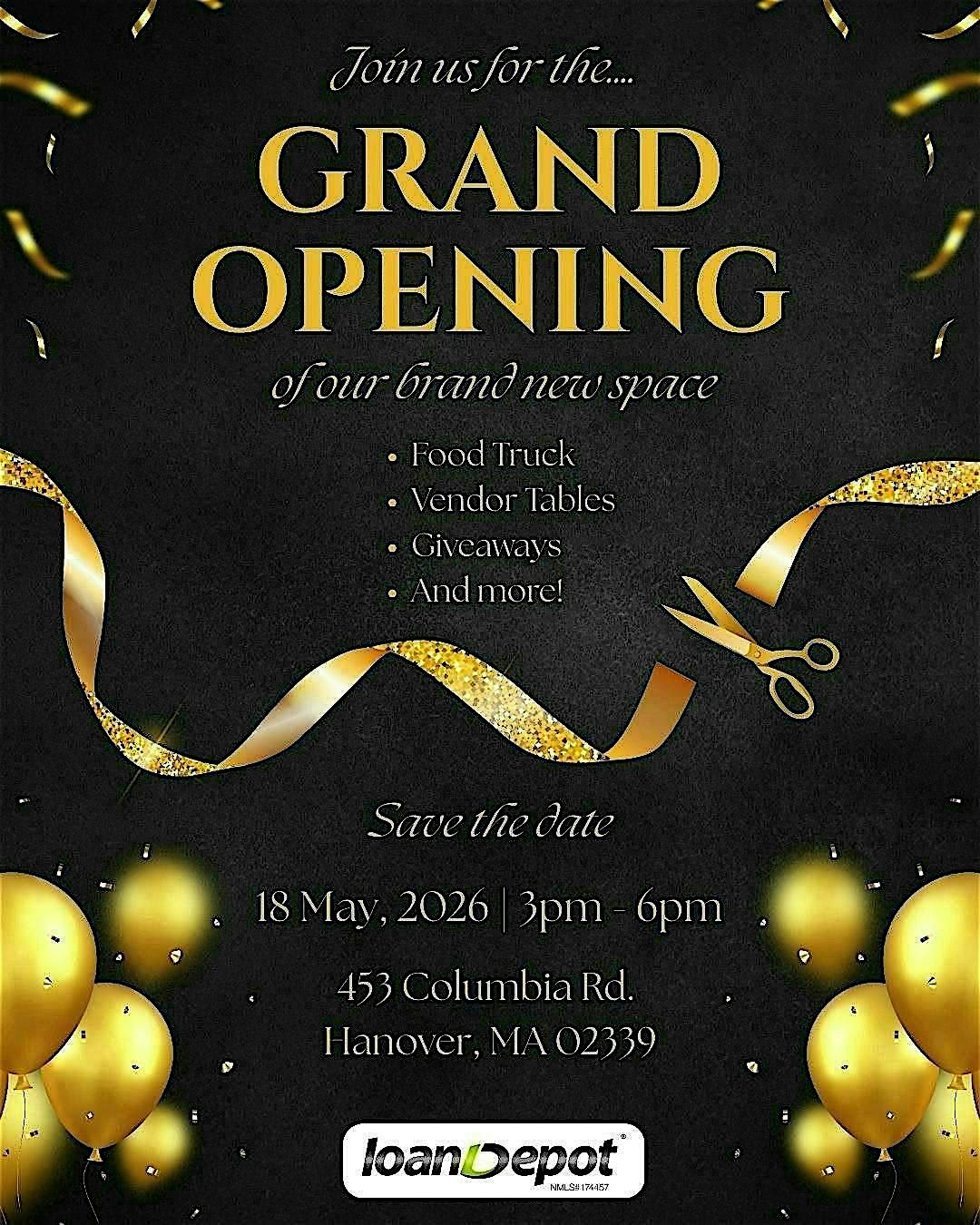 Hey there! ๐ Join us to celebrate the grand opening of our loanDepot Hanover branch! It's going to be a fantastic day filled with good vibes, great company, and a chance to check out our brand new spot. Whether you're curious about home loans or just want to hang out, come on by and say hello!