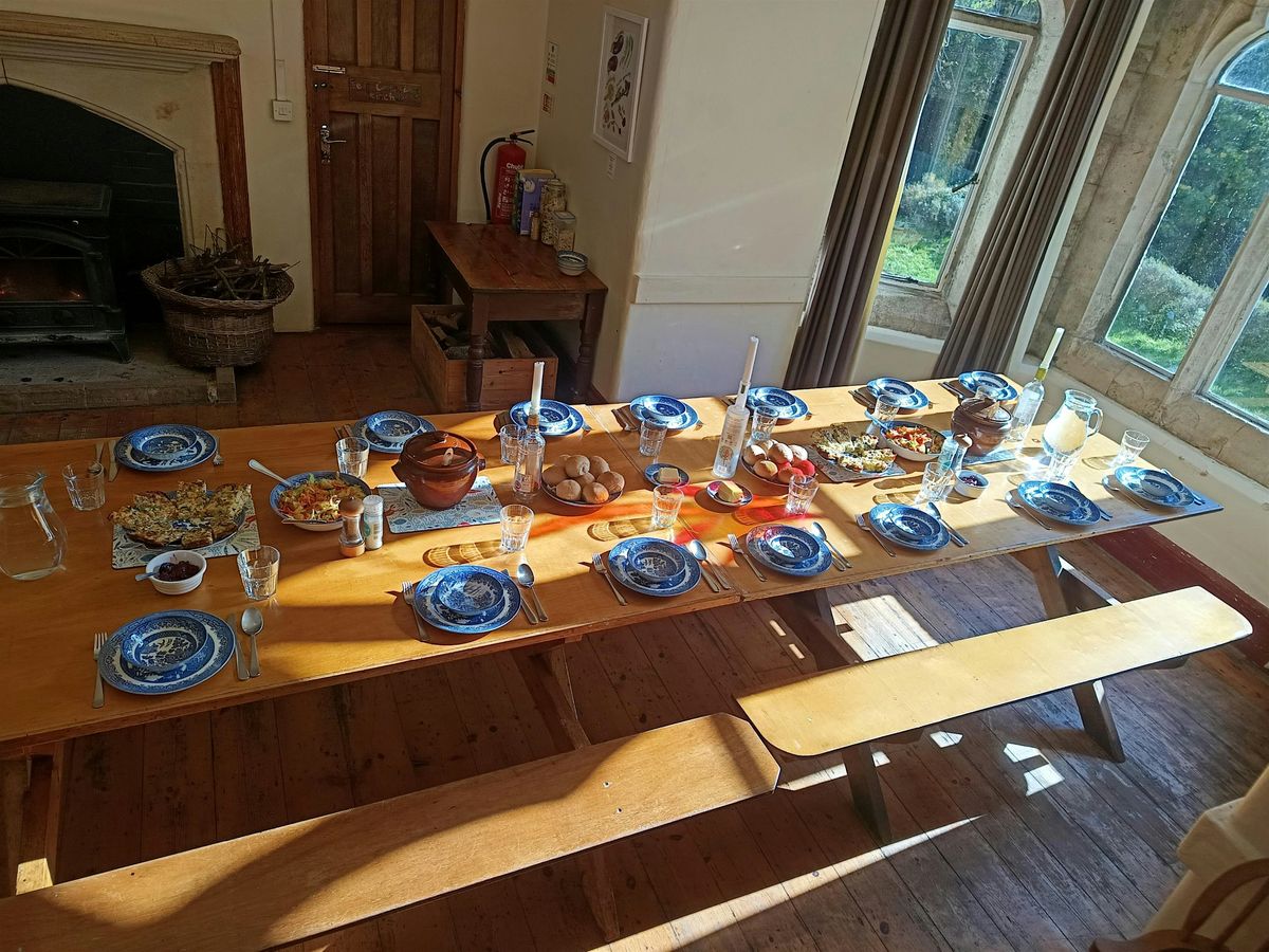 Enjoy a delicious freshly prepared two course vegetarian meal with us in our Visitors' Dining Room or, if weather allows, outside on our terraces in front of the house.