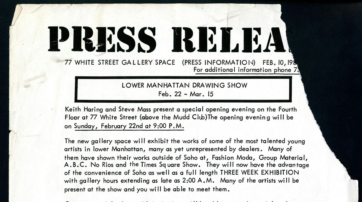 Image credit: Flyer, Lower Manhattan Drawing Show. Stephen Mass Papers; MSS.592; Fales Library and Special Collections, New York University.