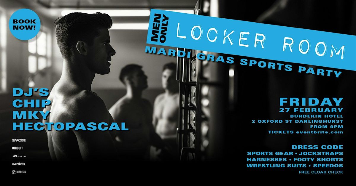 LOCKER ROOM Mardi Gras sports party is a men only event with laser shows, dance floor, top class DJ's, free cloak check and a hot sporty all male crowd of sexy lads.